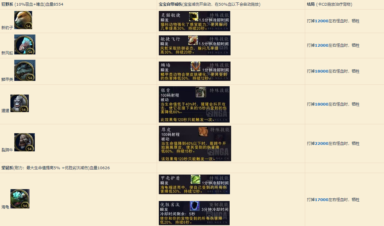 海龟抗怪和鳞甲类、猩猩差别不大,然而狂野宝宝靠吸血在残血的时候还能坚挺一会,坚韧系宝宝残血没减伤一下就没了,况且狂野系还带嗜血优势。
