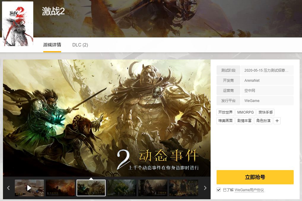 来自腾讯WEGame发布的最新消息,由ArenaNet开发,空中网运营的欧美奇幻网游《激战2》,将于近期登陆WeGame。