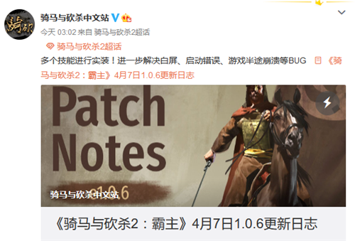 今日(4月7日),骑马与砍杀中文站公开了《骑马与砍杀2:霸主》4月7日1.0.6更新日志详情。在此次更新日志中,官方表示:实装多个技能,同时进一步解决白屏、启动错误、游戏半途崩溃等BUG。以下为此次官方公开的内容。