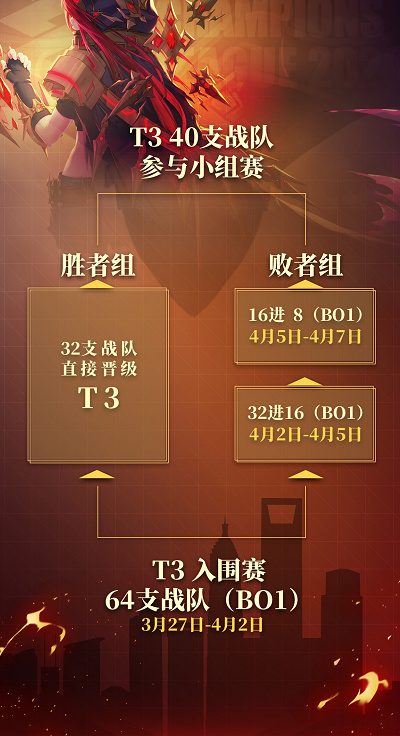 300HCL 2020的T3入围赛目前第一轮已经结束,目前第一轮32支T3战队已经全部出炉,同时T3入围赛 复活赛也已经正式开始,复活赛经过两轮比拼,将下周4月7日,筛选出另外8支战队,与第一轮胜出的32支战队共同组成40支T3战队,与 T1 T2共同进入小组赛。 4月17日将举办小组赛的抽签仪式,决定小组赛的分组和赛程,大家记得关注B站跳跃官方直播消息哦~