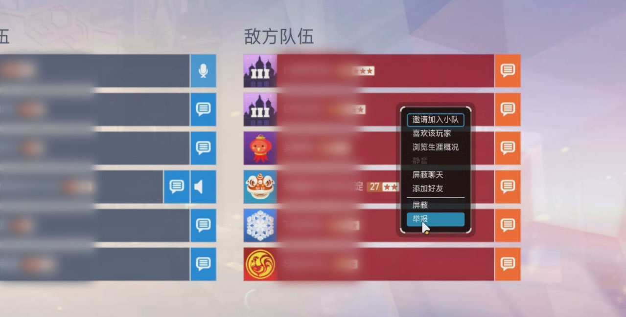 当你发现违规玩家后,对他的头像点击右键或是按“P”键找到他的头像,然后点击“举报”后输入详细信息。