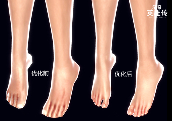 而脚部模型则为此次优化的“关键”,由于此前脚部建模过于粗糙,因此仅对建模进行调整是无法实现质的飞跃,为了达到最好的效果,因此开发团队对脚部模型整体进行了修改。