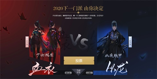 少女双生血衣,幽夜铁甲从龙;《天涯明月刀》全新门派投票结果出炉,从龙共领先血衣近20W票!修罗城、天龙城之后,十二楼五城之“幽夜城”从龙卫踏破夜色而来!只听一人调遣,只为胜战而存,只在暗中活动——第十一门派从龙,将在年终资料片中惊艳上线!血衣门派将在从龙上线后着手制作,天刀世界全新故事正式拉开序幕!