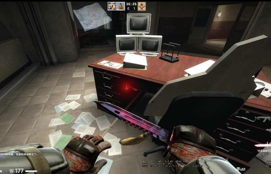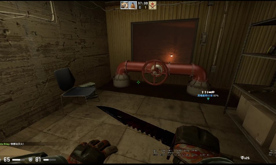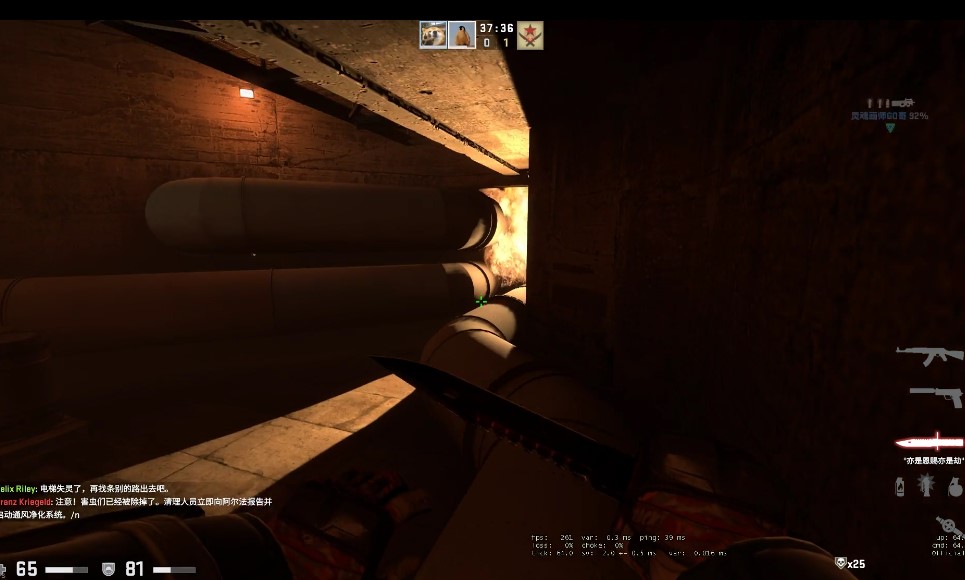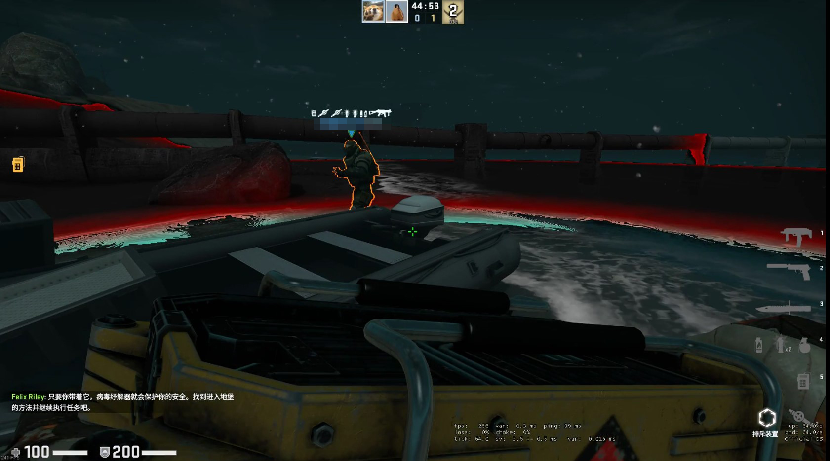继续钻下来后唯一的门发现打不开,但在Franz Kriegeld一通废话后就能打开了进入办公室后发现人去楼控,桌上有奇怪的红点发光,按E就能看到一个隐藏通道打开隐藏通道一路追击解决杂鱼之后发现一个通往外界的爬梯爬上后在解决两个一般BOT,会发现Franz Kriegeld马上就要上船了脚下有一堆M249,对着船倾泻火力就可以了,注意不要被拿AWP的BOT打到,也可以一个人在打船的间隙清一下BOT不一会儿船就打爆了这时候右手边的门会打开,出现一群BOT,沿路清掉他们来到飞机处就通关了~