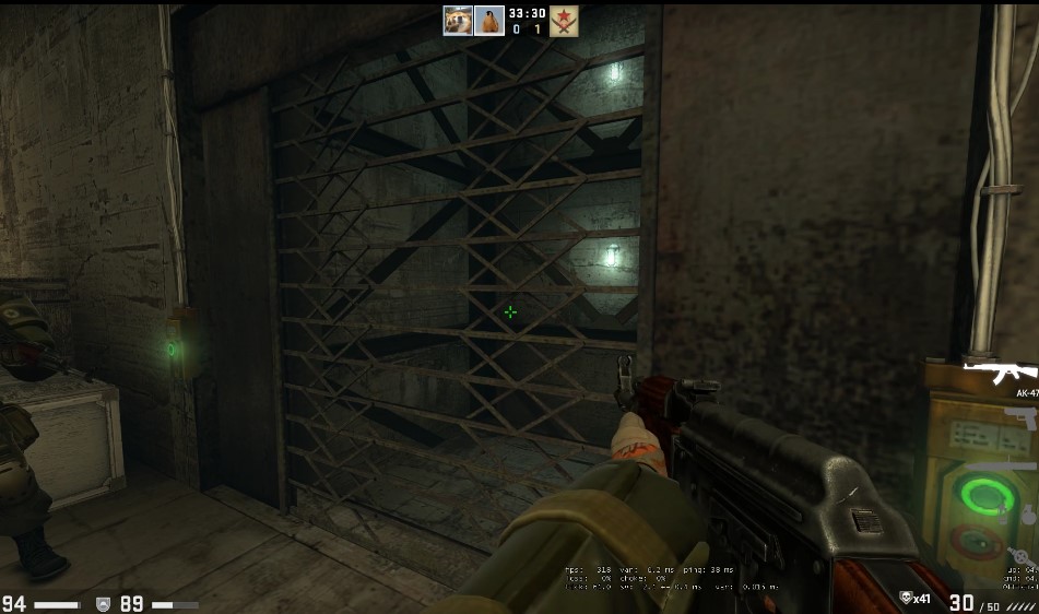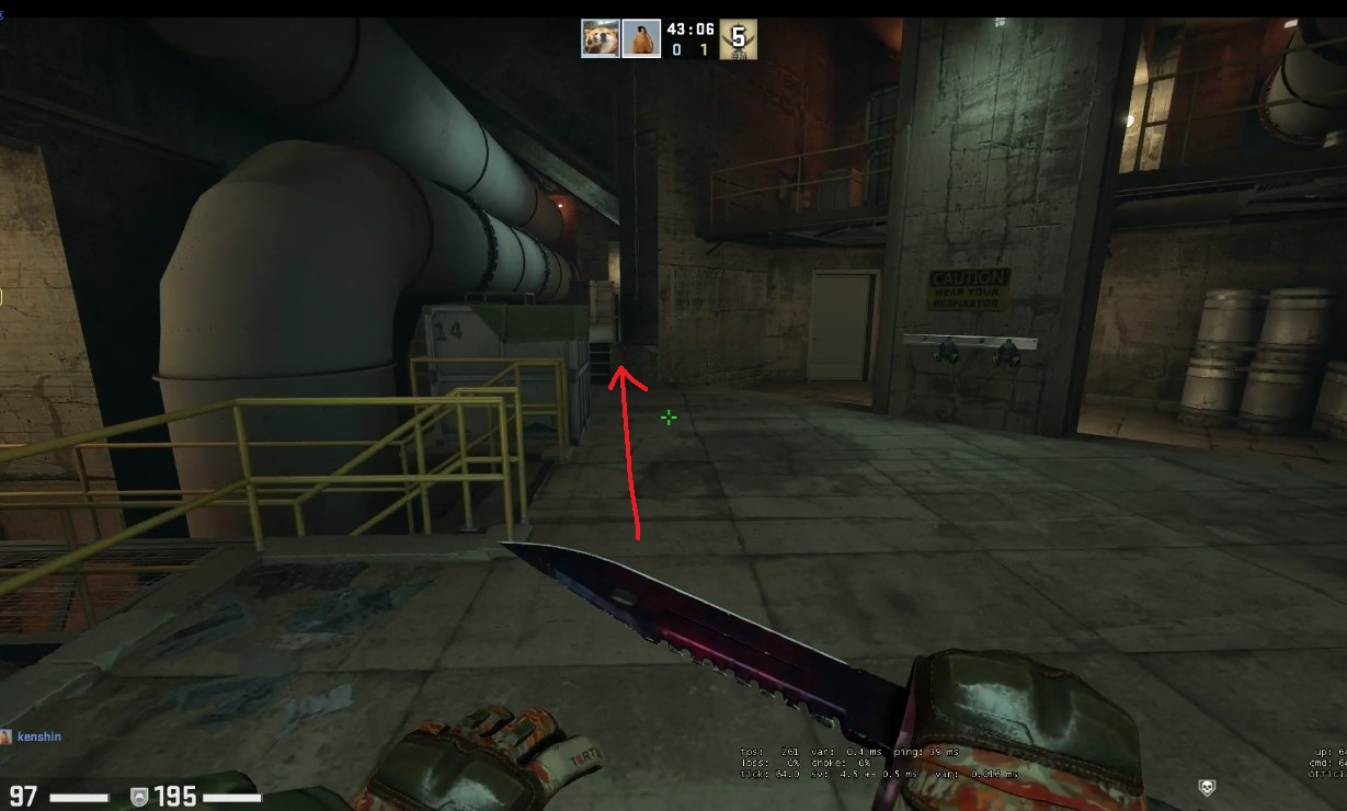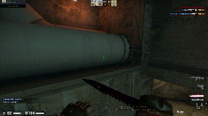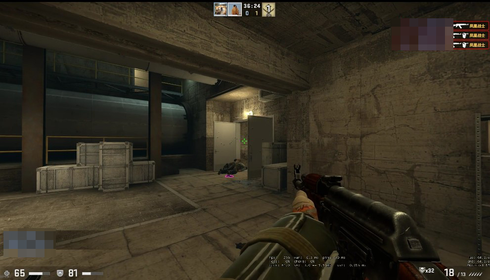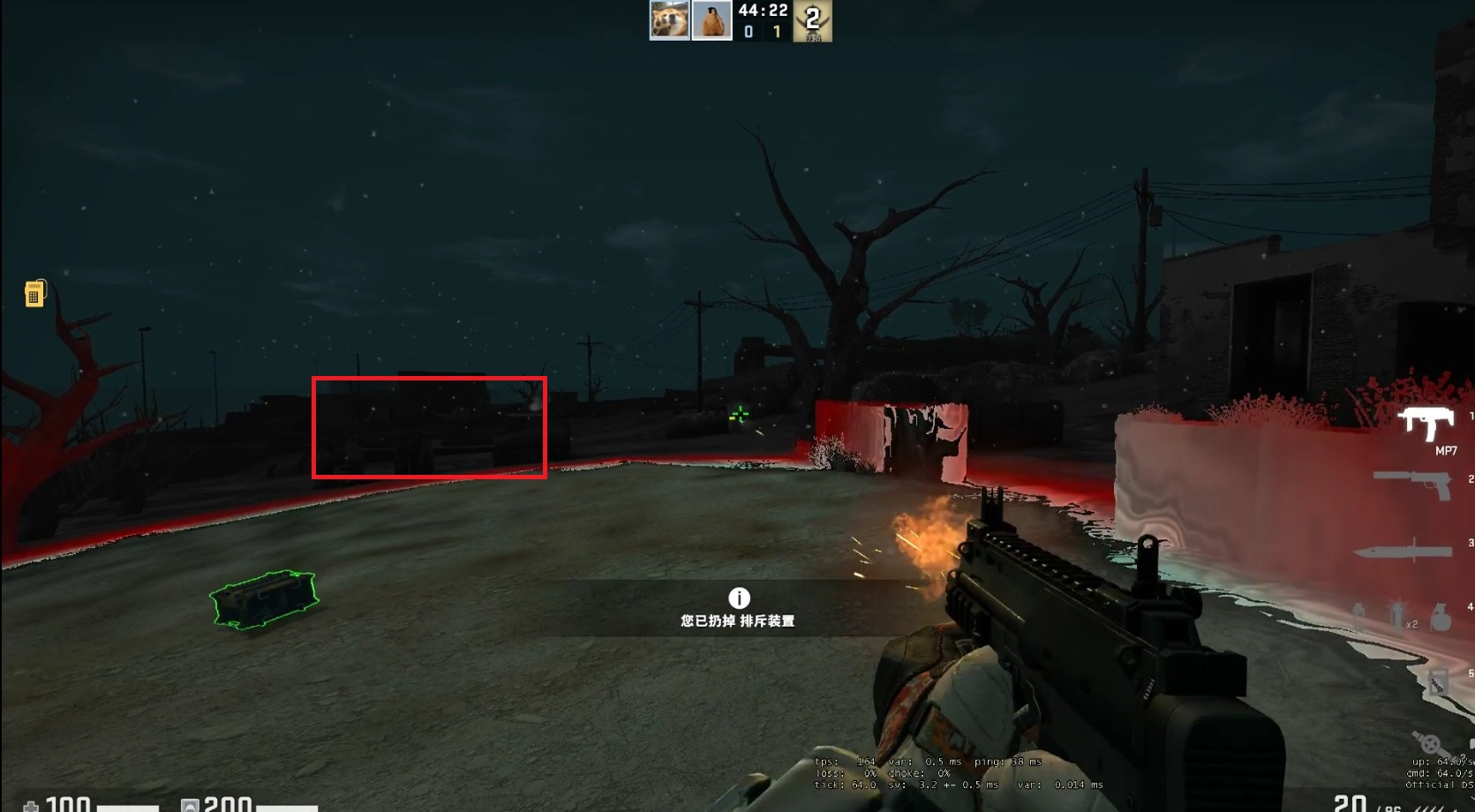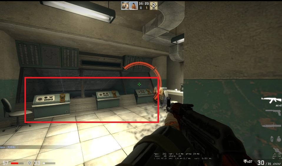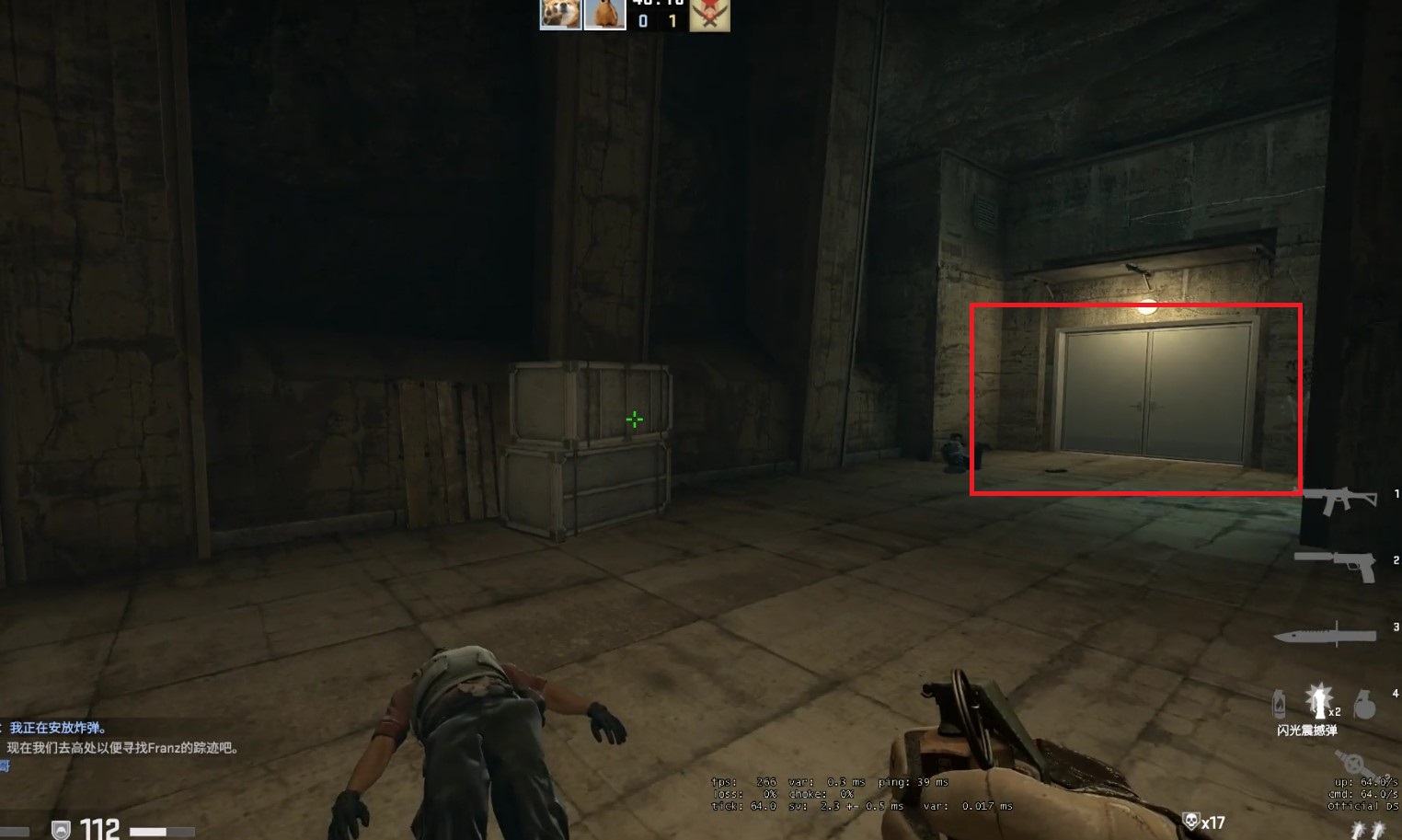 门内四周还有一些BOT,正常清掉即可。清掉后在桥中心发光框内下包下包后会出现一个重甲BOT和一个手持AK的一般BOT,一人桥上一人箱子后,配合闪光可轻松清掉红框内的门出人站位,开门放闪,又键轻投就可以