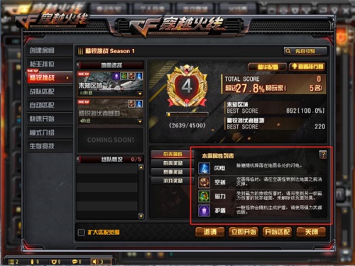 新版本更新后,备受玩家期待的无尽挑战模式正式开启。没有挑战难度上限的全新玩法,将会刺激玩家的战斗神经。在无尽挑战中,每张地图有6波怪物,玩家只要在规定时间内将怪物全部击杀,便可取得胜利。值得一提的是,玩家能够在无尽挑战中无限次复活!同时,为了让无尽挑战模式更加具有趣味性,游戏中还特意加入了赛季排位机制,每周变化的玩法,以及全新芯片系统,让CFer的挑战在充满难度之余同样也不乏新意!