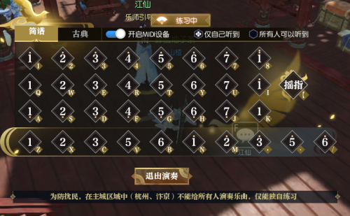 《逆水寒》的乐师身份与其他网游中只能弹一直曲子的内置动作不一样是,在这个玩法中,玩家可以通过按下演奏界面的按钮,来发出相应的琴声,从而为玩家提供了极大的演奏自由度。同时,其他玩家也能听到琴师的弹奏,可以跟随者悠扬的琴声,围绕在琴师的身边为其伴舞。