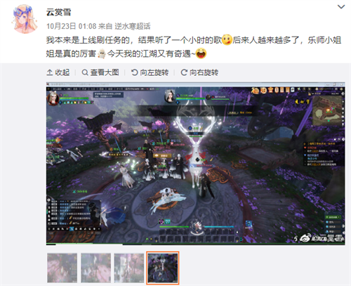为什么这位玩家把偶遇厉害的乐师小姐姐称之为“奇遇”呢?因为《逆水寒》的乐师玩法虽然入门门槛低,但想要精通则需要和现实一样熟知乐理、熟读音律。《两只老虎》等儿歌是游戏中诸多小白乐师的入坑练习曲,想必听多了这些儿歌的玩家,偶遇一个技艺拔群的乐师小姐姐在弹奏高山流水,的确可以算是一个可遇而不可求的奇遇了。