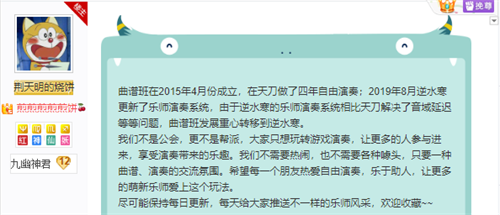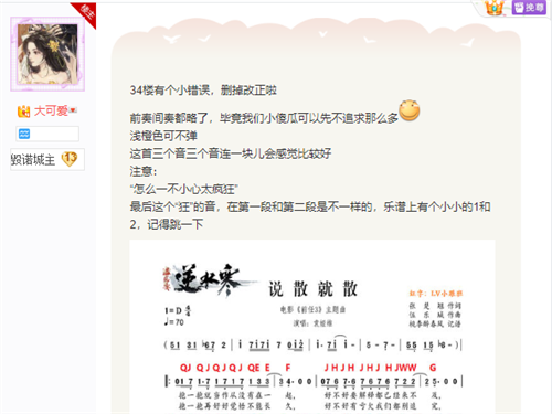 其实,为了帮助有心学习琴艺的小白玩家提升弹奏技巧,在《逆水寒》的贴吧中有许多热爱乐师身份的玩家开贴分享自己的弹奏技巧与自制琴谱,甚至还有从天刀过来的玩家开设起了曲谱班。他们孜孜不倦的整理出了各种类型乐曲的琴谱,亲自演奏并录制了教学视频,展现给希望学习弹奏技巧的玩家。