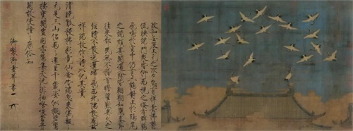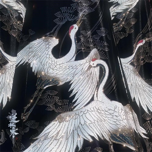【瑞鹤】系列时装以北宋宋徽宗赵佶所作《瑞鹤图》为灵感,采用宋代宫廷的制衣标准,将天空中如云似雾的鹤群织成了衣裳,气韵非凡。