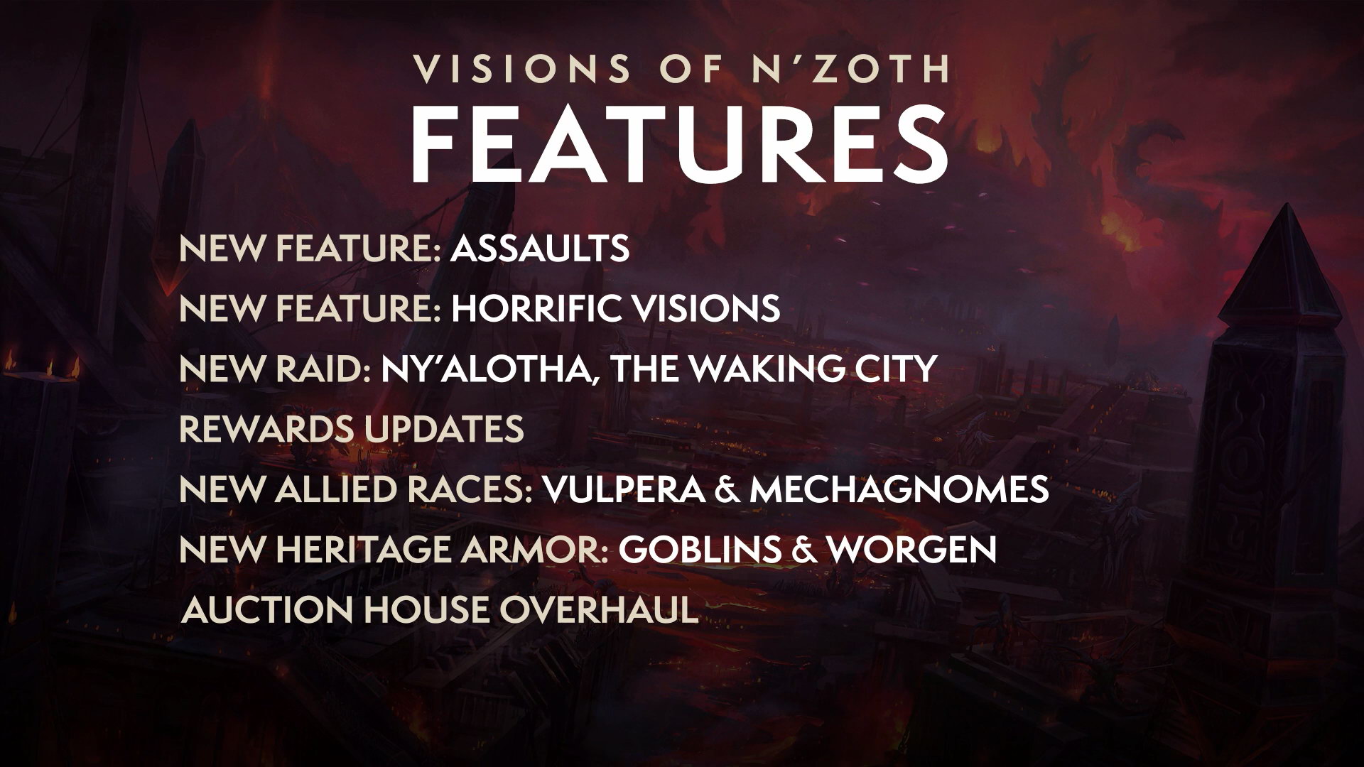 近日《魔兽世界》官方发布前瞻视频,游戏总监Ion Hazzikostas介绍了《争霸艾泽拉斯》第三个大内容补丁:恩佐斯的异象(Visions of N'zoth)。