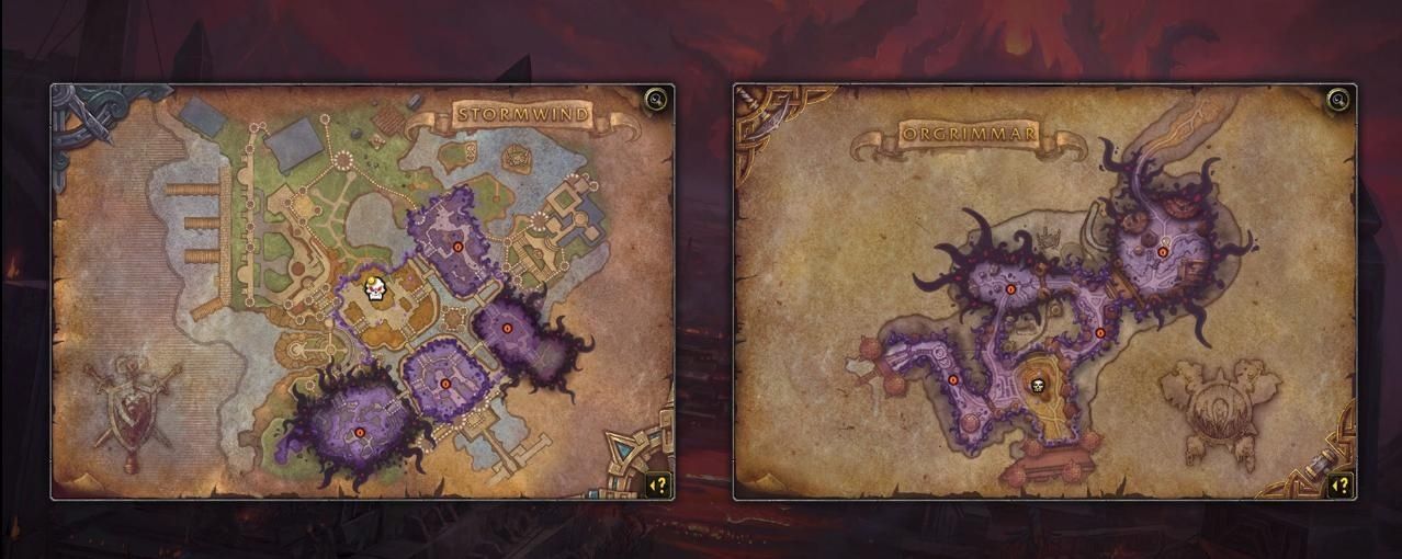 恐怖幻象是一个全新的挑战,其灵感来源于《军团再临》版本的法师塔挑战。恐怖幻象向1-5人的队伍开放,玩家将进入虚空版本的暴风城和奥格瑞玛,清理其中的虚空生物。黑王子拉希奥将协助玩家,并会向玩家提供一件特殊的披风,协助玩家推进。披风最高可升级到传说品质,提高对抗恩佐斯的效率。