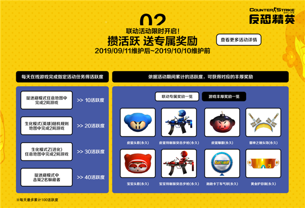 9月25日,《反恐精英Online》将迎来国庆全新版本。“跑跑卡丁车”经典角色宝宝、皮蛋居然要作为战斗角色出现在“蛋拐”的全明星模式中啦!身为“飙车党”,在强调战斗的《反恐精英Online》中,是否会吃亏呢?有着萌萌的大头的他们,又将给战火纷飞的全明星战场带来怎样的活力呢?《反恐精英Online》和跑跑卡丁车联动专题福利活动精彩来袭,登录就送精美礼包。完成游戏内联动活动还有大量稀有武器道具及芯片在等待着大家哦!