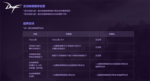 新版本对深渊系统进行了整体调整,改版后,在超 ? 星空中可以掉落超界史诗,泰波尔斯史诗的掉落率提升,同时也添加超界史诗掉落专属特效。除此以外,星空深渊与超 ? 星空深渊掉落泰波尔斯史诗的概率提高,但掉落哈林史诗的概率下降,进一步契合玩家的史诗装备需求。