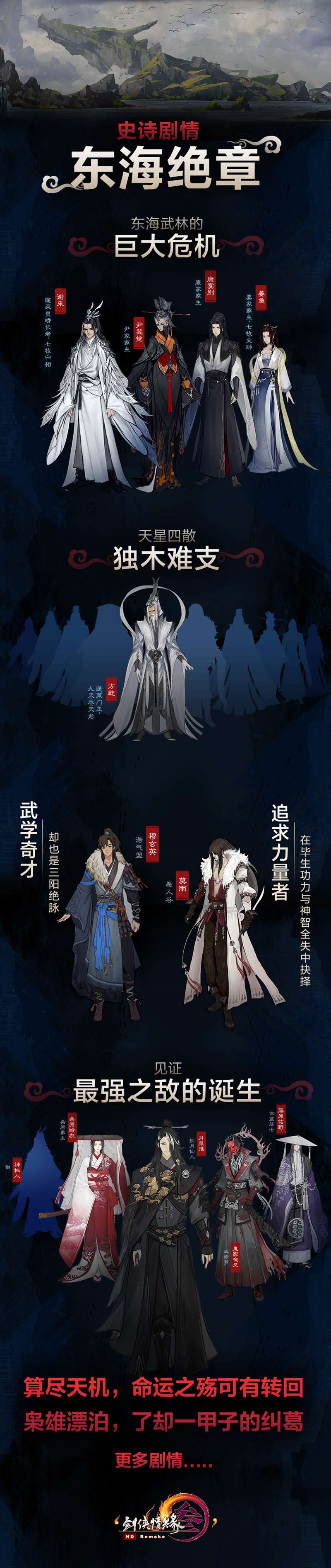 铺垫十年的剧情再度延续,神秘龙脉,九天宝藏都将在这里浮出水面。鬼山会和神秘人整合海龙会与香巫教,联合日本国以及渤海国目的占领东海。李重茂再度出现,直指九天宝藏。同时,某个实力派敌人也将在侠士的目睹下获得超越九天的力量。