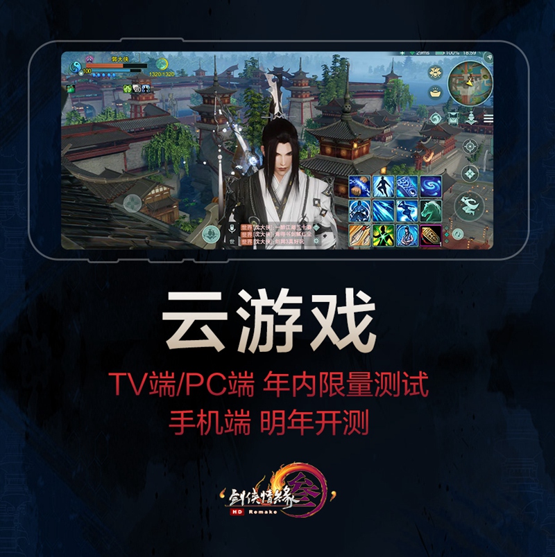而在端游结尾的部分,郭大侠还为侠士们带来了一个隐藏的重磅彩蛋,那便是——云游戏!随着5G时代的即将到来,《剑网3》云游戏功能也正如火如荼的制作当中。在全新的云游戏客户端中,侠士将无需下载游戏,即可在任何时间、任何地点通过手机、电视、平板电脑、上网本上任意畅玩《剑网3》,无端技术的融入,只需要有网络便能体验顶配的游戏画面!而为了方便大家使用,还将定制专门的操作模式和界面表现!从今往后,随时随地畅玩《剑网3》,将不再只是说说而已!