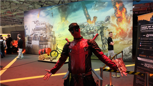 在体验游戏之余,玩家还可以与展台摆设亲密合影互动,精美的游戏周边也吸引了大批玩家前来领取,更有人气coser化身“小贱贱”强势入镜。此外,《无限法则》展台还将在21-24日举行“科隆氧气王”比赛,紧张刺激的线下赛事将为现场观众带来心跳体验!