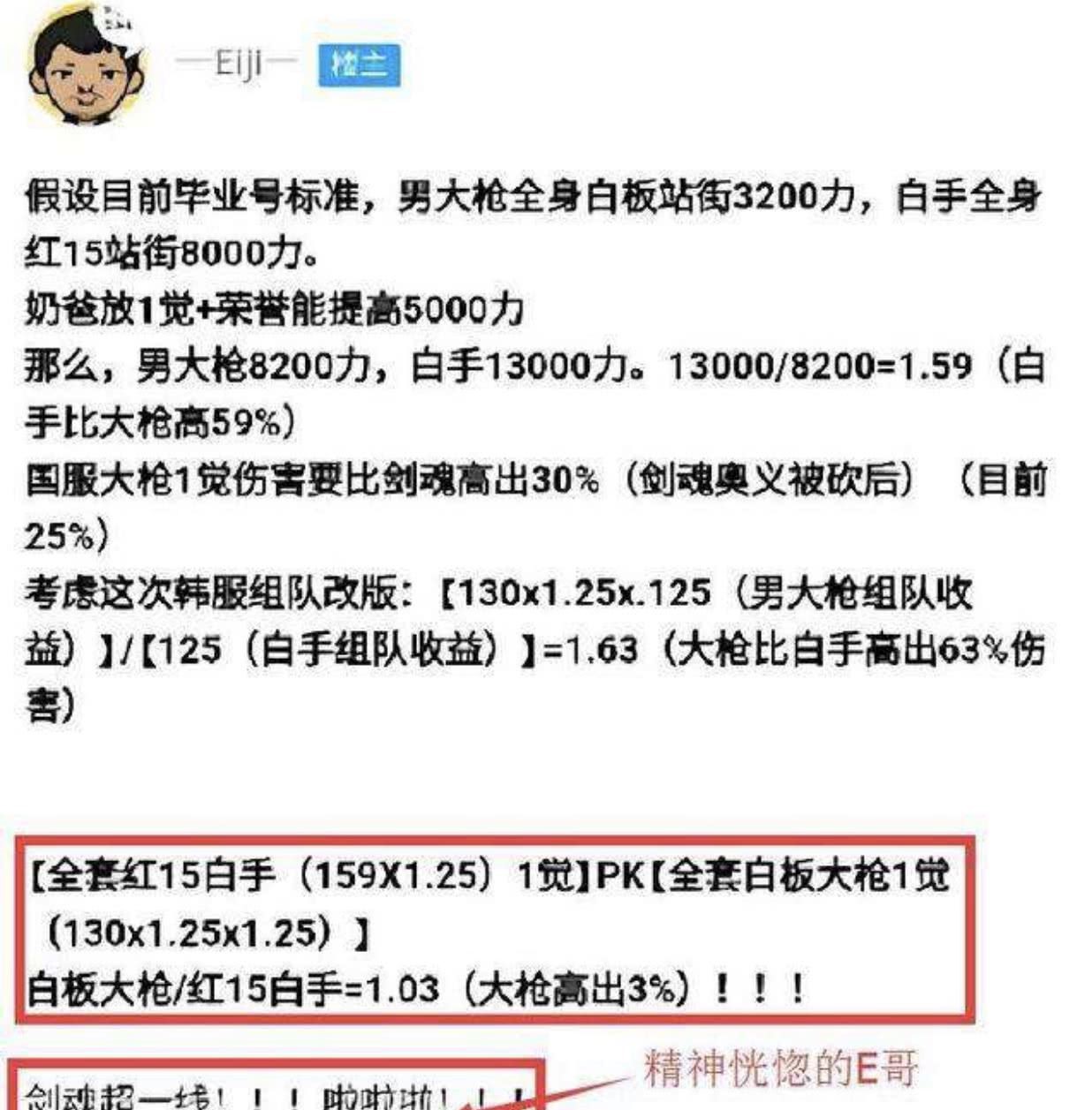 相信许多玩家都知道Eiji,白手我只认他一个,对这个职业有独特的见解,可以把职业属性发挥到极致,所以许多白手玩家都在效仿他,B套红眼还不如A套白手玩着舒服,旭旭宝宝的红眼打桩也不如白手,反正最直观的感受就是红眼不如白手强,但是在Eiji眼里相反。