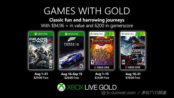 微软今日公布了Xbox金会员2019年8月的会免游戏,Xbox One和Xbox 360各两款,其中Xbox 360的两款已加入向下兼容,本次会免的时间从2019年8月1日~2019年9月15日不等。