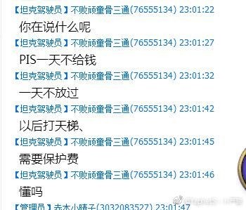 从PIS曝光的聊天记录来看,恶势力相当猖狂,曾扬言“PIS一天不给钱,一天不放过,以后打天梯,需要保护费,懂么?”