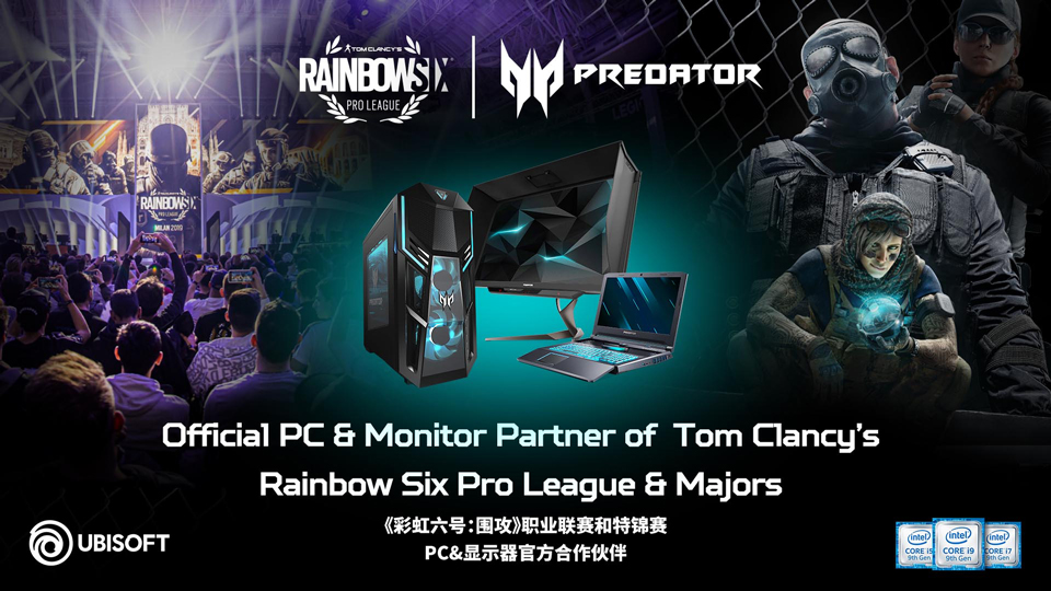 育碧正式宣布与宏碁PREDATOR品牌就北美、欧洲、亚太以及拉丁美洲地区展开独家合作,从本周开始的《彩虹六号:围攻》第十赛季职业联赛至2020年11月,为其赛事提供有史以来规模最大且雄心勃勃的赞助。