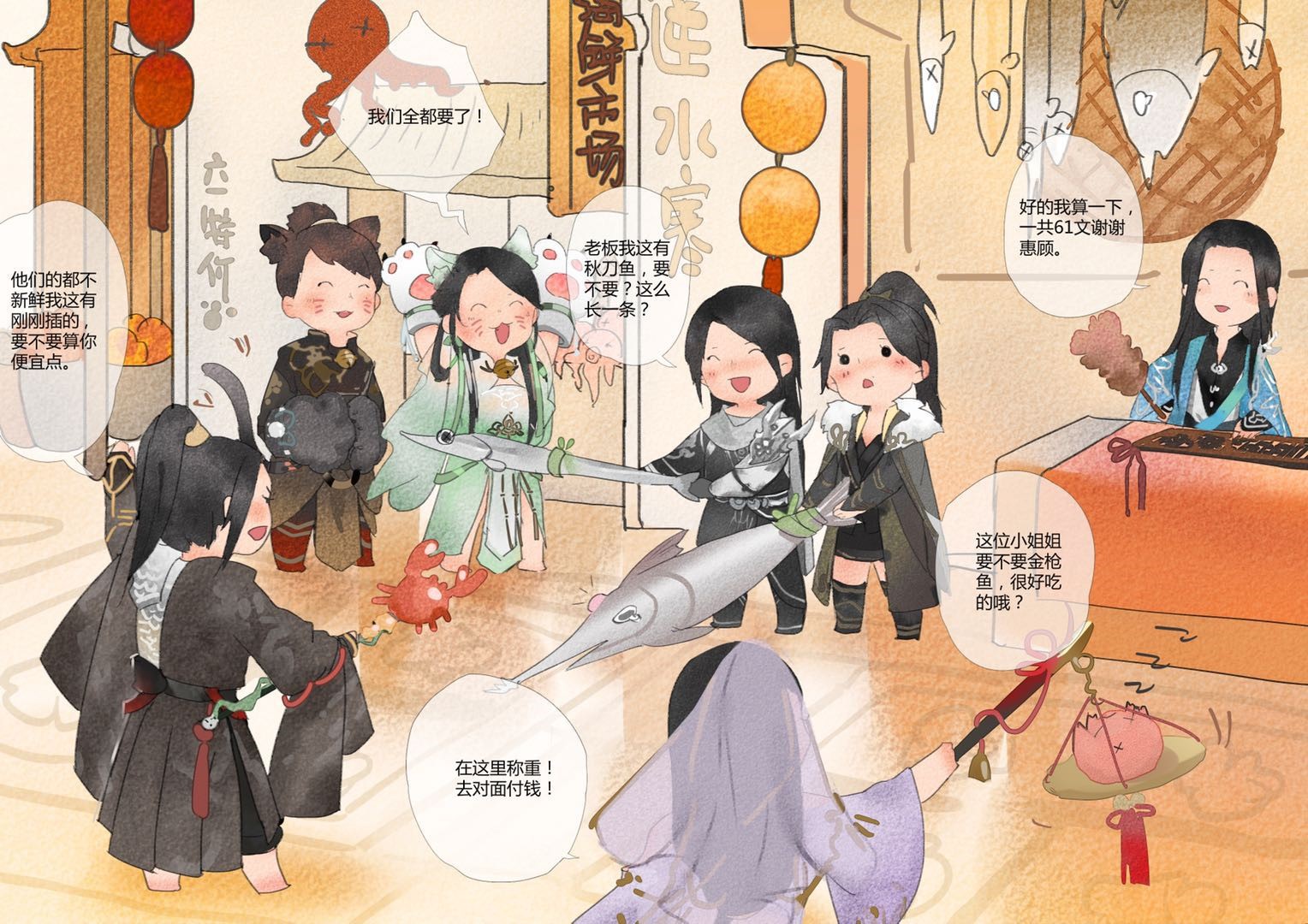更有玩家脑洞大开,表示《逆水寒》都可以办个海鲜市场了,血河卖螃蟹,龙吟碎梦卖咸鱼,九灵称重神相算账,一条龙服务齐全了。