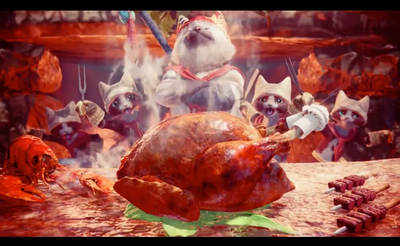 对于《怪物猎人》系列,无论是游戏中奢华的菜肴菜谱,亦或是一语双关的角色对白都令玩家们印象深刻。2004年作为PS2独占游戏,《怪物猎人》在众多游戏中显得与众不同。在游戏中,玩家将扮演一名猎人,在一个充满了恐龙和巨兽的世界中冒险,通过战斗杀死怪兽后可以把怪兽带回营地,利用回收的材料制作新的盔甲和武器,然后不断的去挑战更加凶猛厉害的怪兽,成为猎人中的佼佼者。