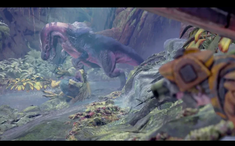 另外,与其说《怪物猎人世界》是一款RPG游戏,不如说它更像是一款逼真的模拟类游戏。例如当玩家正在与角龙厮杀时,附近的恐暴龙可能也会路过,由于这些怪兽之间会相互敌视,他们可能会自相残杀而把玩家暂时抛之脑后。在面对这种混乱的场面时,玩家可以捡起地上的怪物粪便,向恐暴龙的脸上扔去,他就会流露出厌恶之情,随后逃之夭夭,这样一来玩家就可以继续和角龙单打独斗。