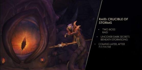 在全新的版本中,玩家将会面对古神势力。在萨拉塔斯的指引,玩家开启了位于风暴神殿下方的风暴熔炉,面对恩佐斯手下的数位大将,并以此为引子,连接8.2版本艾萨拉女王的故事线。