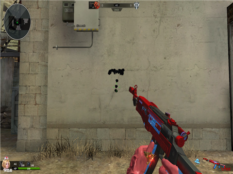 接下来看弹道。步枪形态下奇变的武器原型是AN94S,弹容量38发。我不知道我拿来测试的这个号有没有装步枪弹夹,不过会想起之前一个大佬打变异用的奇变有两百多发备弹,Emmmmm怎么就觉得这个38/152那么少呢……
